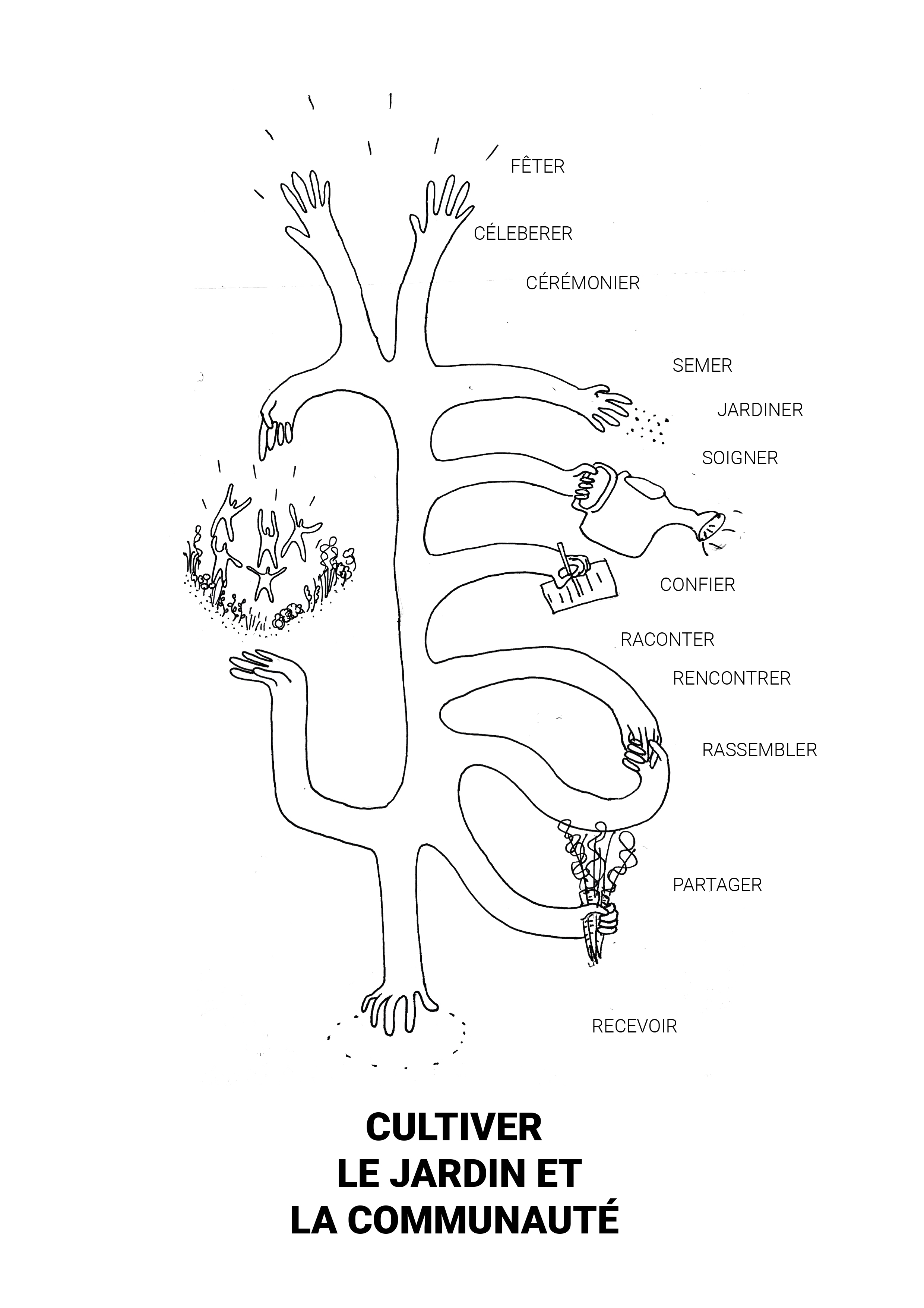 Les pensées et les végétaux émergeront de ce jardin qui se parsèmera de pousses poétiques et de voeux pour l’avenir recueillis au cours des ateliers d’écriture. Lors de la fête de la Cité, le jardin sera inauguré avec une danse de l’arbre de mai.